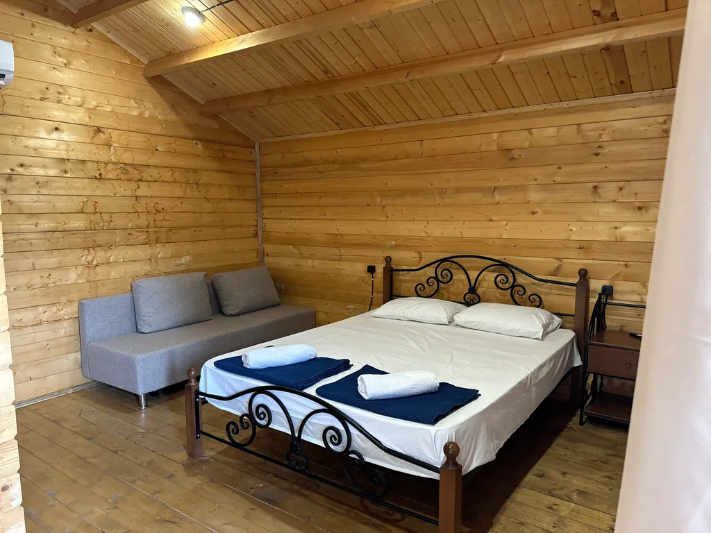 Прекрасное место. Осталось желание ещё вернуться. Хозяйка домиков красивая общительная девушка. Все вопросы были сразу решены. Рядом виды гор, много растительности, кипарисы. Дорога до моря близкая. 5 минут ходьбы. Есть магазины рядом. Есть кондиционер, поэтому в жару норм, и даже включали на обогрев в очень дождливый день. Есть общая кухня, на которой можно приготовить себе еду. В номере есть холодильник и чайник. Чистое постельное и полотенца, белое без пятен. Есть стиралка, можно постирать вещи. Парковка как внутри двора, так и возле.