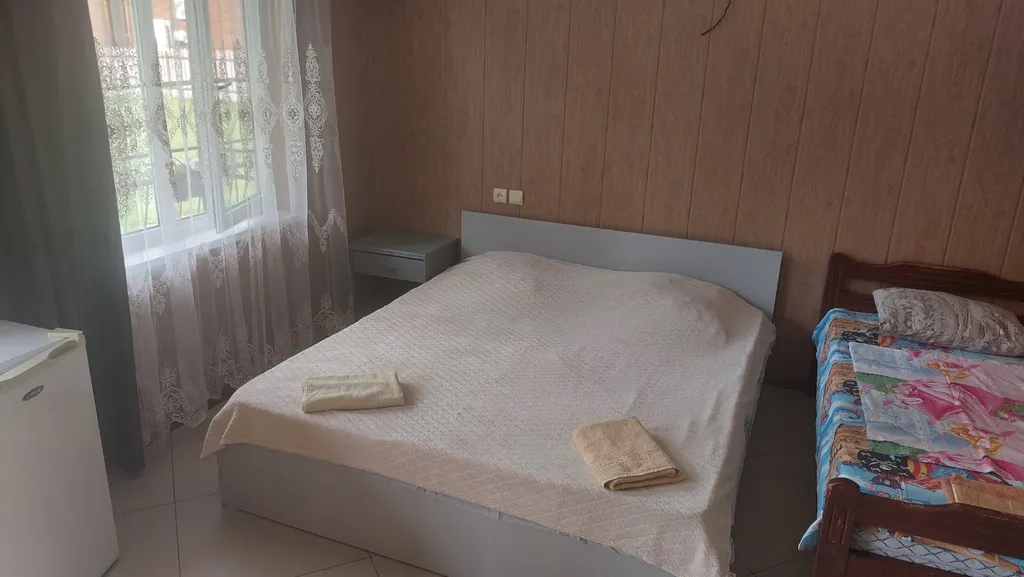 Уютный домик с санузлами внутри каждого номера среди вечно зелёной растительности. Находимся в 4х км от центра Пицунды. Считаемся пригородом,очень спокойное место. Рядом магазины,кафе,столовая,аптека. Остановка "Птицефабрика".