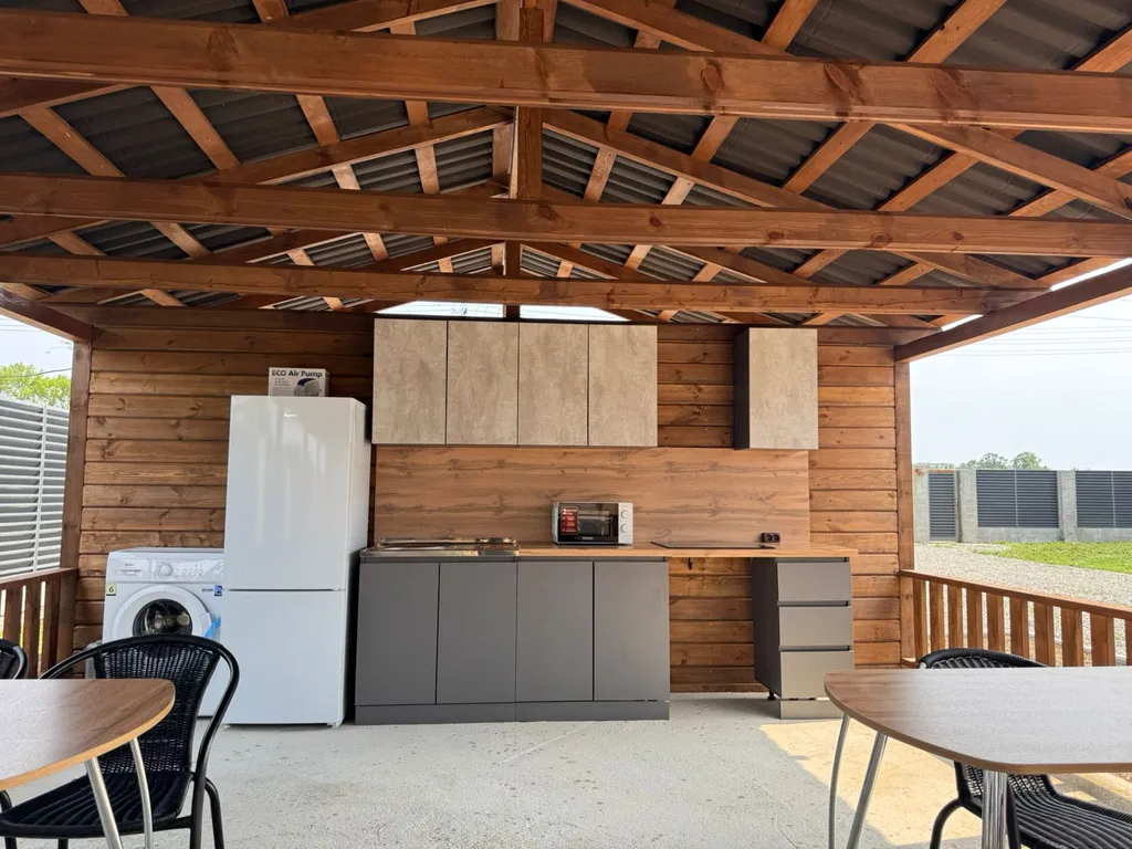 Спасибо хозяевам, Алисе и ее супругу за приём. Фото домиков и территории соответствует на все 100🔥в Абхазии отдыхали 2й раз, такой вид жилья в первые, муж в восторге, а дети тем более. Домики новые, все новое и чистое, вода, свет а главное тв работало отлично. При заселении есть презент от хозяевов, бутылочка вина❤️🍾. На территории есть освещение, парковка, бассейн, лежаки и мангал, на кухне есть все не обходимое(если вы намерены готовить сами) + 💣услуга стирки бесплатно. До пляжа 5мин пешком, а если на авто в 10мин есть бомбическое место в соснах пляж Лидзава💣💦🔥🌊💦. Хозяева очень любезны и добрые, все расскажут и подскажут если есть вопросы по местности, всегда на связи.