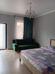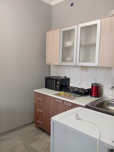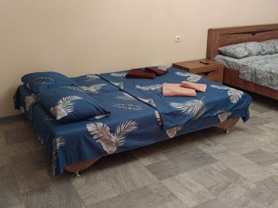 В каждом номере есть холодильник, телевизор, кондиционер, фен, вай-фай, шкаф, двухспальная кровать и диван двухспальный. На кухне есть всё необходимое, посуда, чайник,